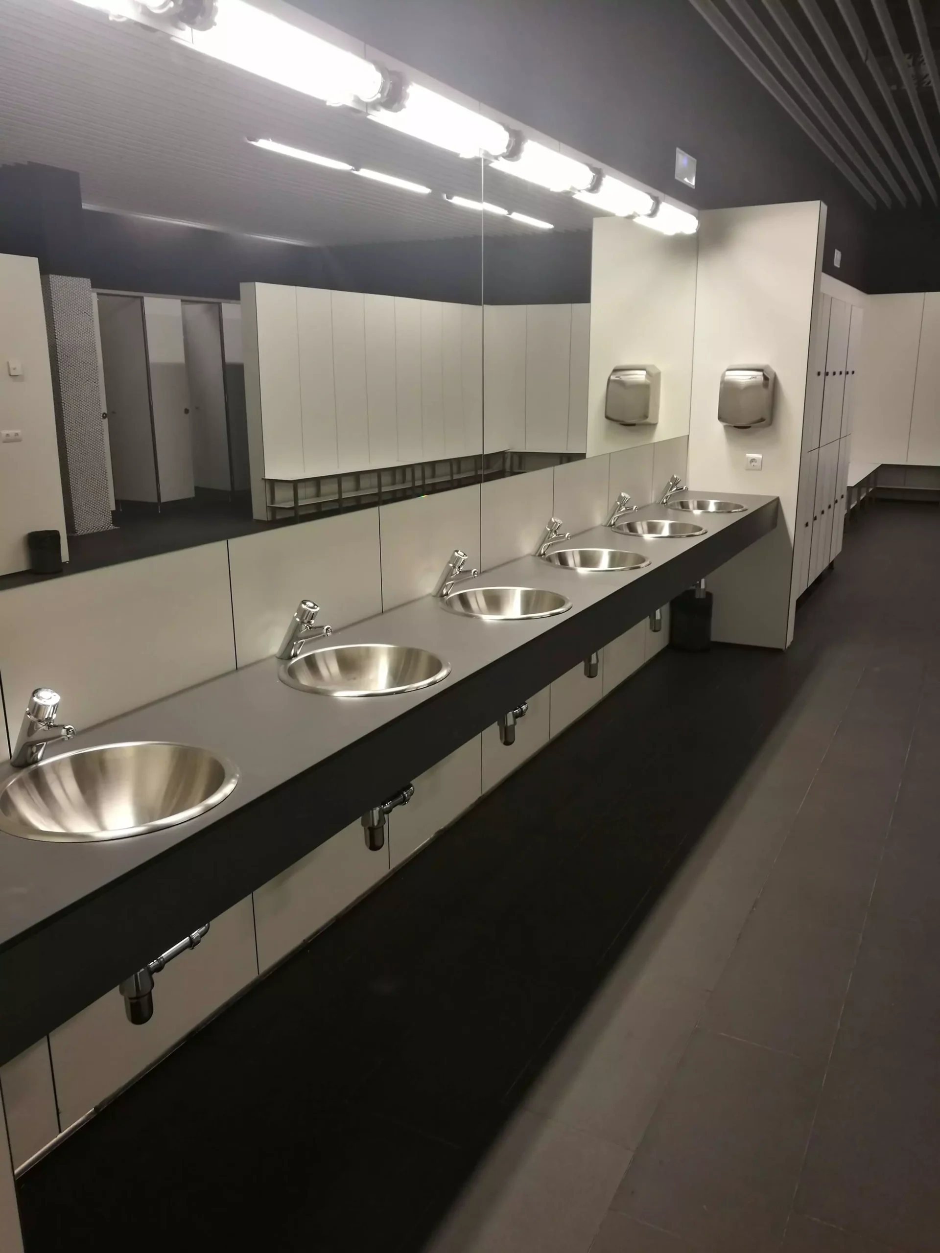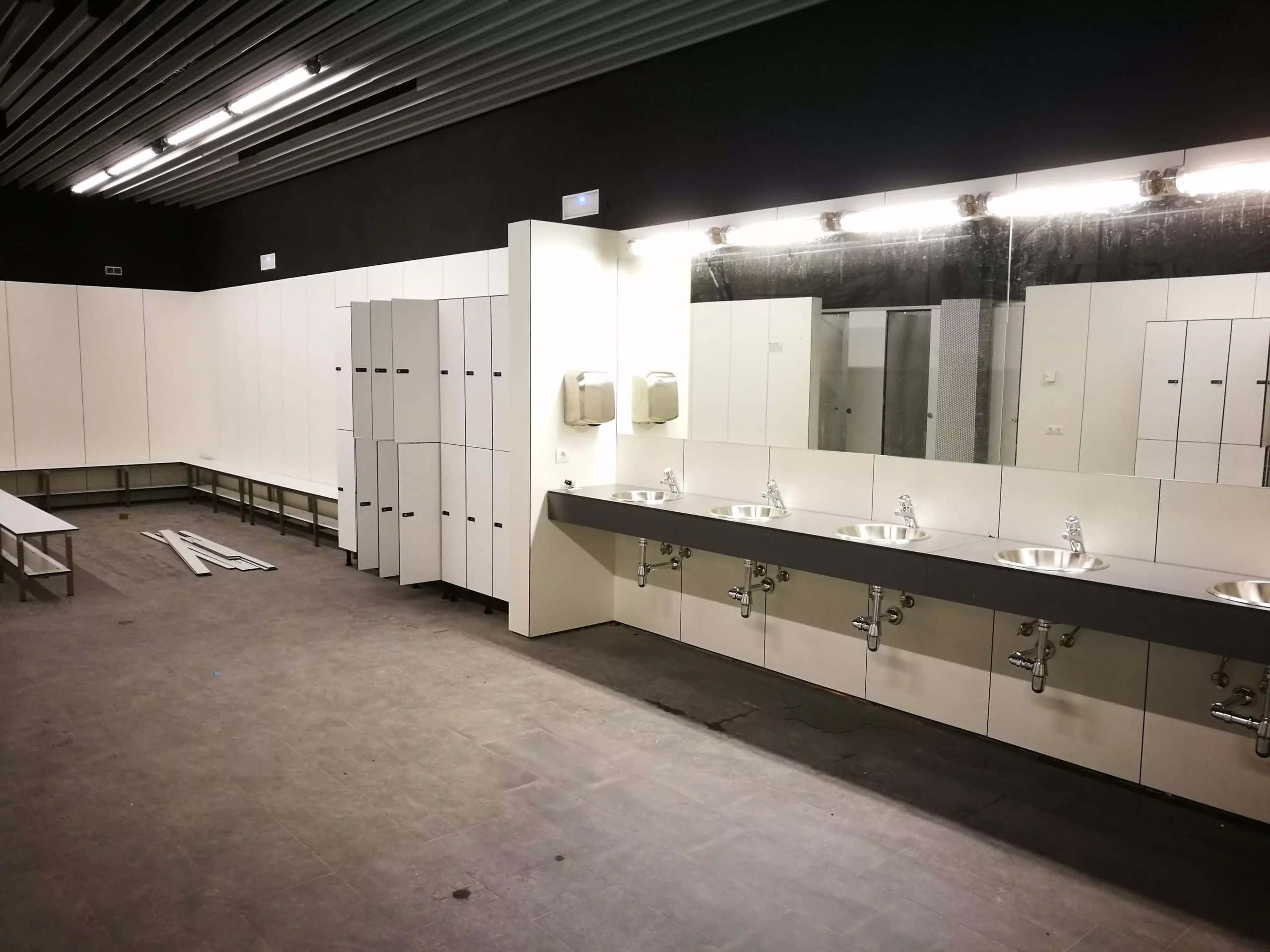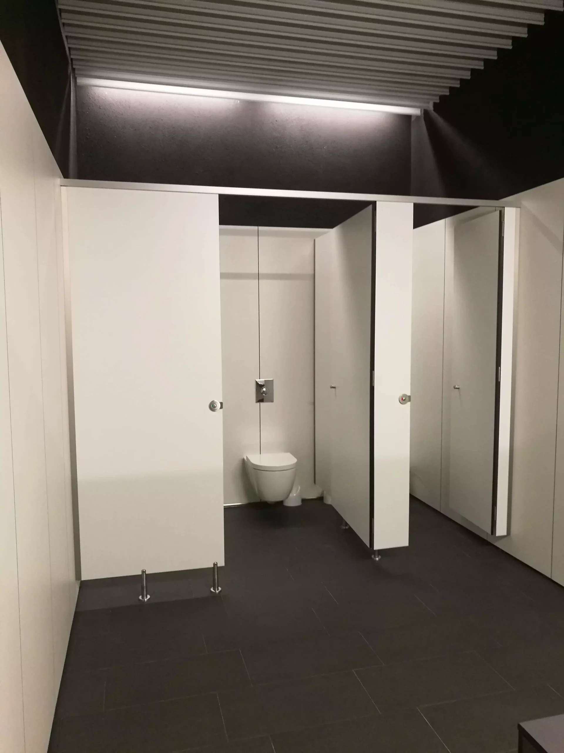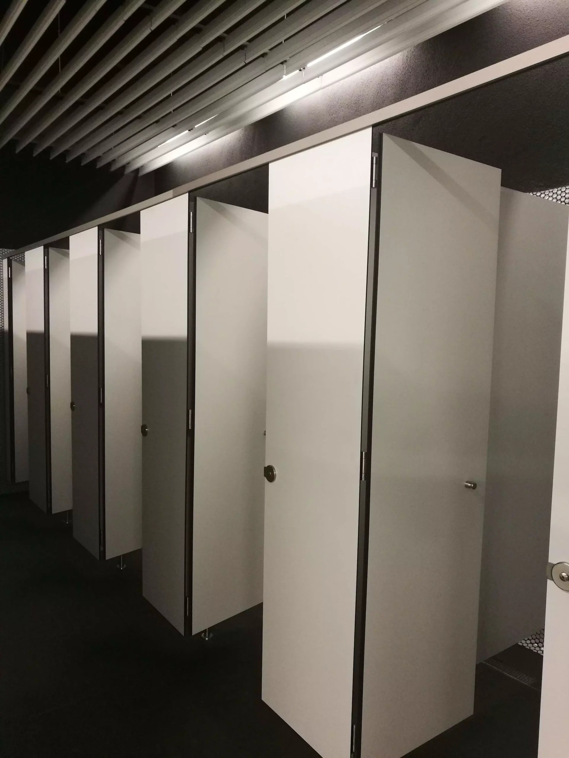 Nuestras cabinas sanitarias están hechas de compacto fenólico de 12 mm, resistentes a golpes y humedad. Adaptamos el diseño a cualquier espacio, asegurando funcionalidad y estética en baños públicos.